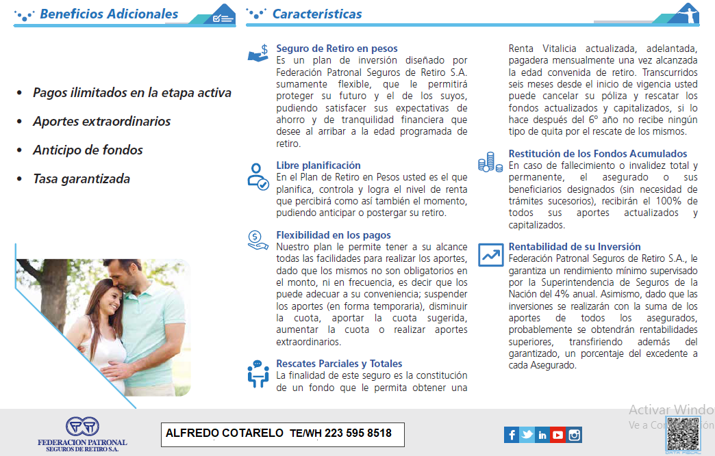 Plan Flexible donde los aportes no son obligatorios en el monto, ni en frecuencia; pudiéndose adaptar a la conveniencia de cada seguro. Se pueden suspender los aportes (en forma temporaria o definitiva), disminuir la cuota, aportar la cuota sugerida, aumentar la cuota o realizar aportes extraordinarios.